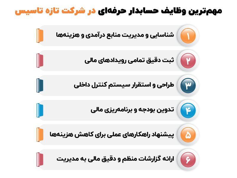 از جمله مهمترین وظایف حسابدار حرفهای در شرکت تازه تاسیس میتوان به موارد زیر اشاره کرد :