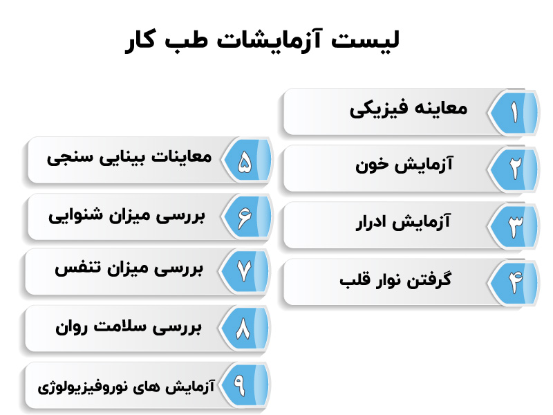 در معاینات و آزمایشهای طب کار بدو استخدام چه مواردی بررسی میشود؟