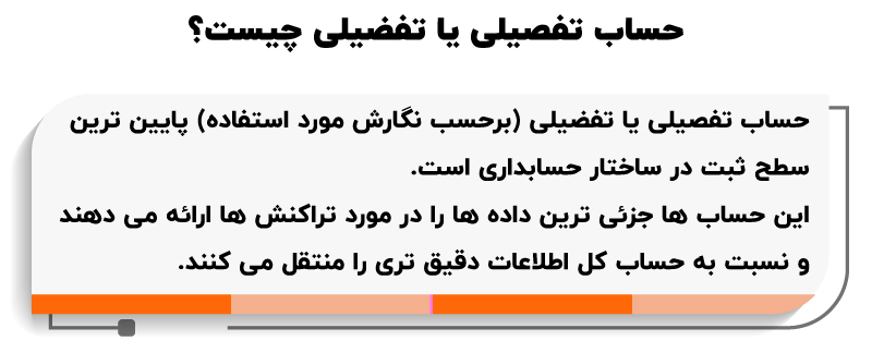 | حساب تفضیلی | ارائه اطلاعات بسیار دقیق و خاص درباره تراکنشها یا اشخاص |