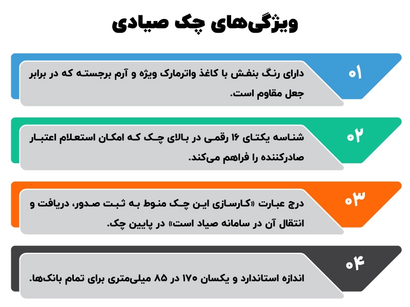 ویژگیهای ظاهری و امنیتی چک صیادی چیست ؟